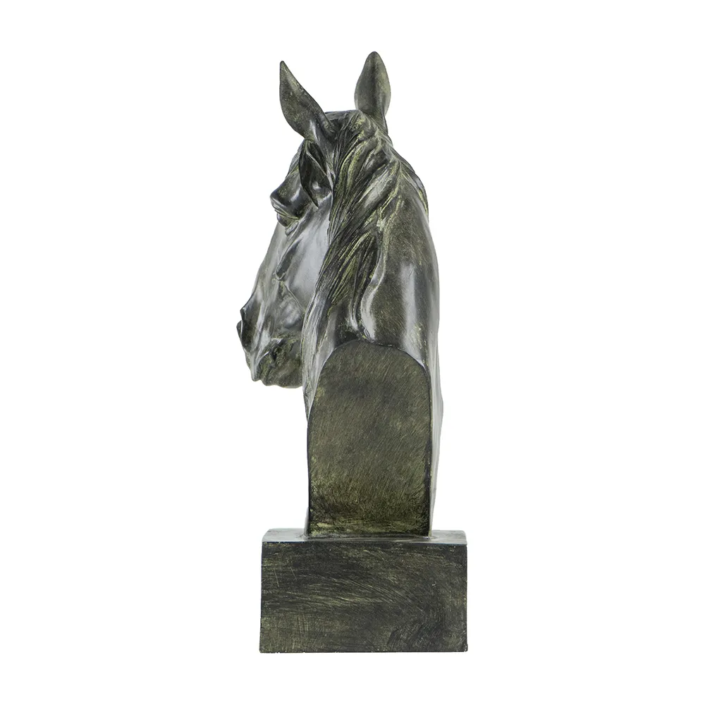 Exceptionally detailed, this handsome sculpture offers a tasteful way to express your appreciation for equine beauty through the art of interior decor. This piece is crafted from polyresin for durability, also making it lighter than other stone alternatives. The dark color works well with a variety of interior color palettes.