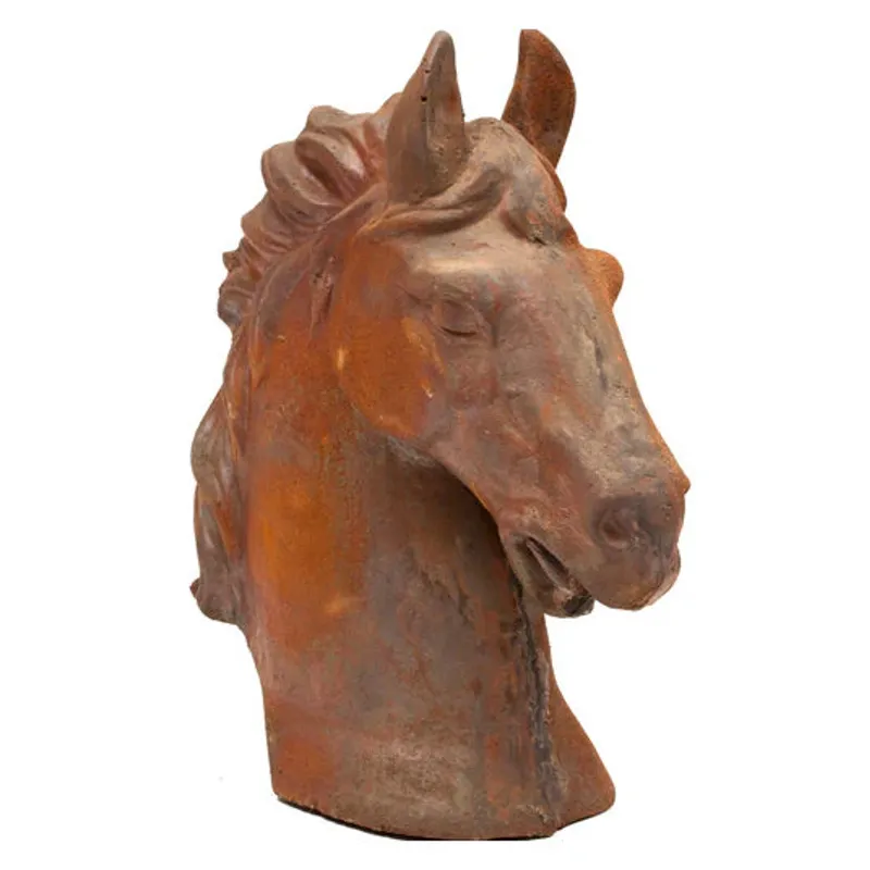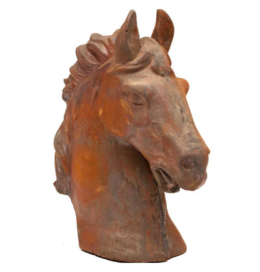 Whether your tastes run to the ranch or the racetrack, our equine horse figures are a sleek and sinewy addition to home or office. Made from the highest quality cast iron. Hand-caste by skilled artisans, each head is treated with a chemical wash to achieve its distinct, naturally rusted finish.