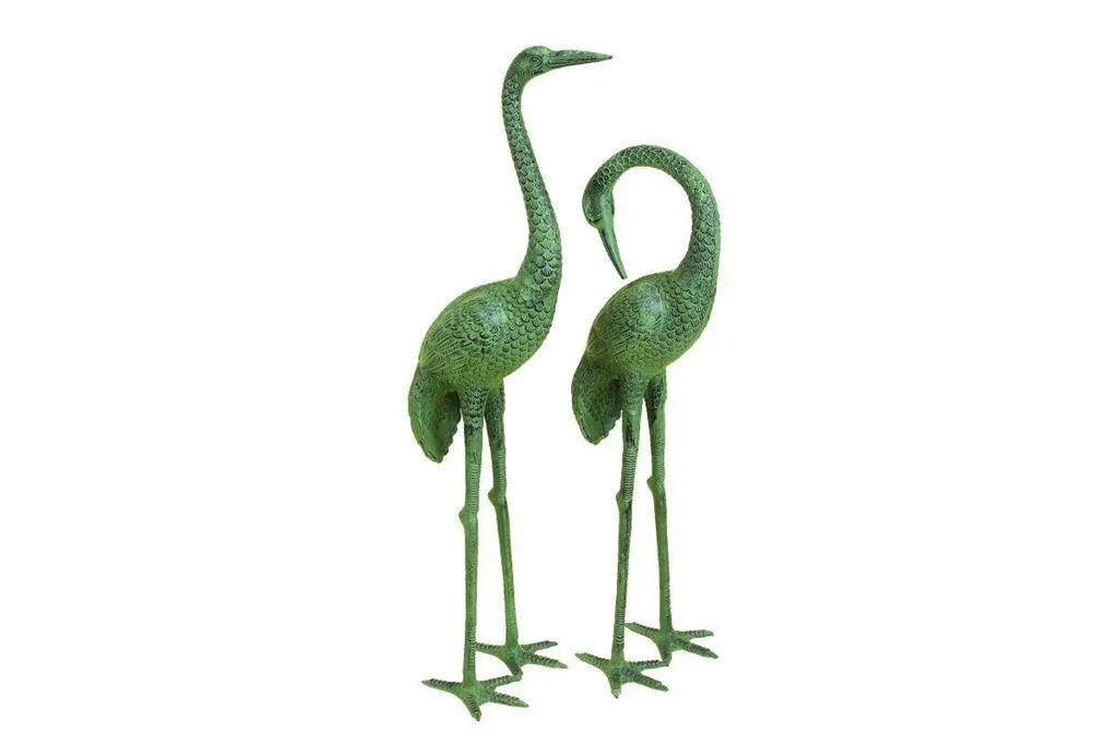 • Molded aluminum is formed into tall crane shapes and carefully detailed with realistic features