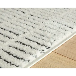 This area rug delivers a clean, modern touch to your home. Its striking stripe design provides plush comfort underfoot, while neutral hues make it a welcome addition anywhere and everywhere.