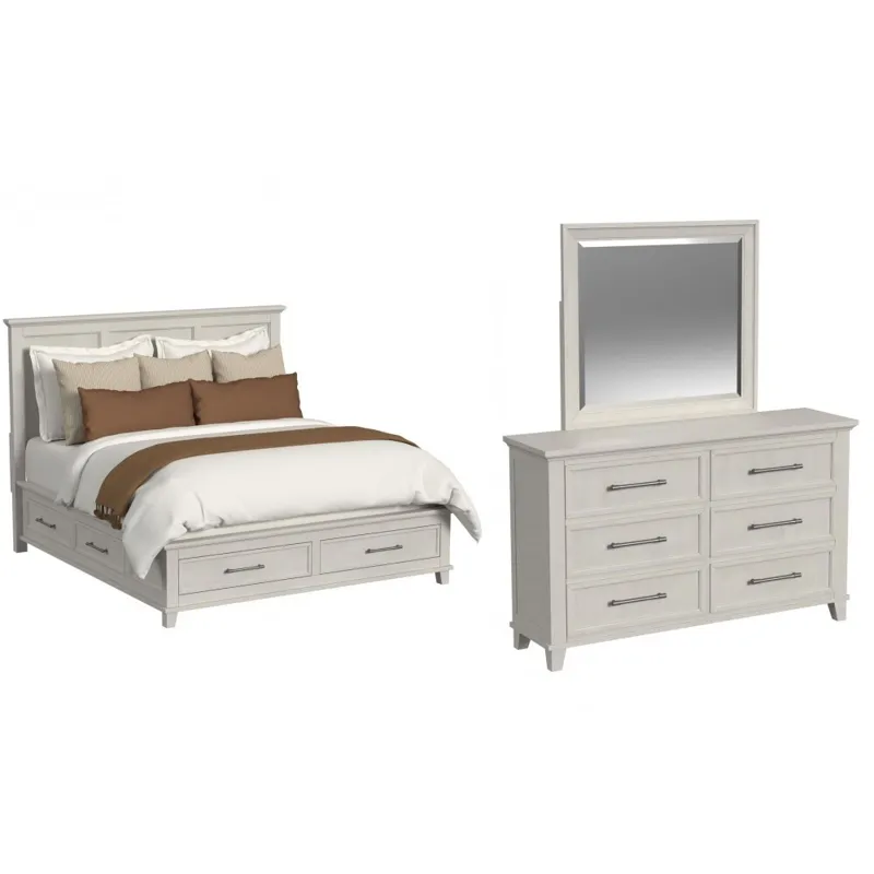 Canterbury King Storage Bed in Ivory w-84 in x d-87 in x h-62 in