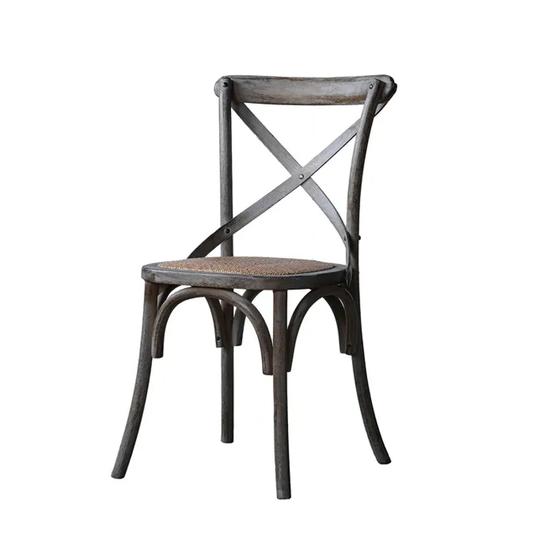 The delightful Linnea Dining Chair is a bistro chair crafted from rubberwood. The seat is a traditional rattan weave while the back frame features a simple X-pattern wood support. The wood is finished in burnt oak giving it a rich hue.
