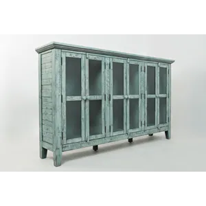 The Telluride Collection is the essence of rustic country style with distressed solid pine handcrafted into spectacular furniture perfect for any room in your home. Each piece is unique with subtle distressing that brings out the beauty of the natural wood. This fully assembled four drawer sideboard accent chest is a great addition to any room in your home combining style and countryside charm in a distinctive package. Four full size drawers with solid metal handles provide generous storage up top, while the bottom features four sleek black grill X-Style doors with an additional large shelf to round out the look. Great in virtually any room in your home, this 70" accent cabinet makes a bold statement of sophisticated style while creating a welcoming atmosphere.