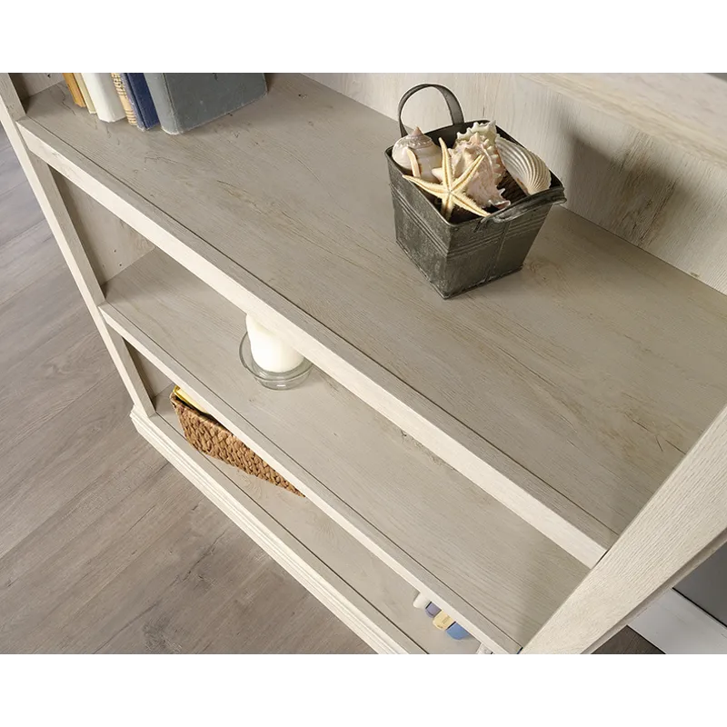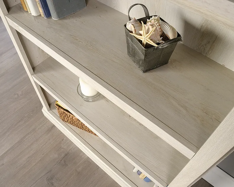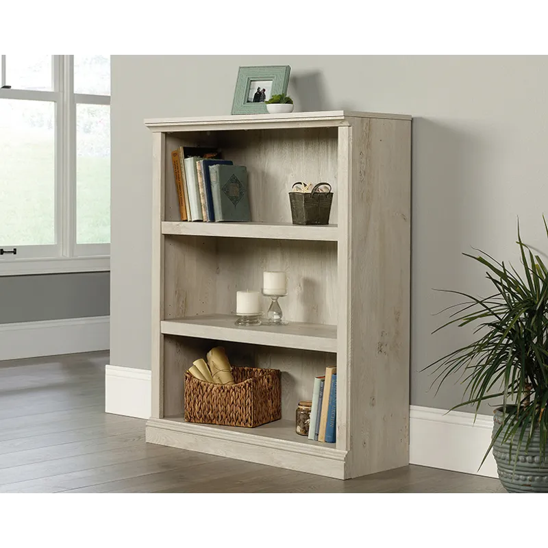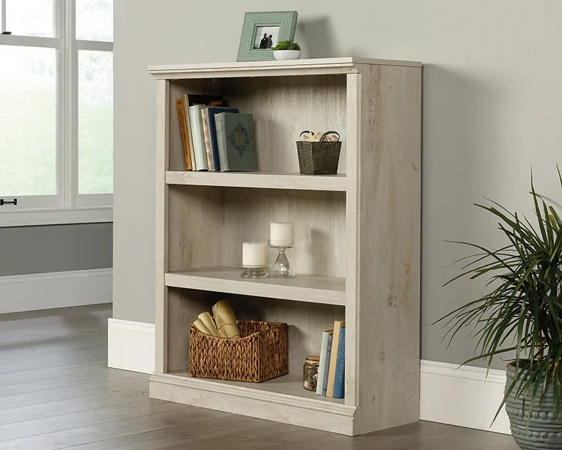 Craving a little extra storage space in your home? Check out this beautiful 3-shelf bookcase from the Sauder Select collection. It offers the ideal amount of space while adding a touch of charming style. It features two adjustable shelves for you to modify and move to different heights to accommodate any small, large, or misshaped items you may have. Its three spacious shelves make the perfect spot to store and display anything from board games and your collection of books to decorative plants and your most prized possessions. Its large top surface also makes a great area to display an accent lamp and your favorite smelling candle. This handsome bookcase looks good no matter where it stands – in the living room, down the hallway, the entryway, or even in the bedroom! It has so much to offer! Finished in Chalked Chestnut®, this good-looking bookcase will have your home looking stylish and organized in no time.