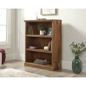Kick clutter and chaos to the curb! Give your home the additional storage space it needs while adding the style that you love with this 3-shelf bookcase from the Sauder Select collection. This storage bookcase features three large shelves that are ideal for storing a variety of different household items like your favorite books, stacks of magazines and work supplies. These spacious shelves also make a great spot to display home décor items like your collection of knick-knacks, decorative succulents, and framed photos of your family and friends. The two adjustable shelves have the ability to move to different heights to create flexible storage for items of all shapes and sizes. This small bookcase also offers a large top surface that provides you with additional space to store or display other items. Its versatile design and modern style make this bookcase a great solution for any room in your home. Finished in Vintage Oak®, this display bookcase is everything you need and more!