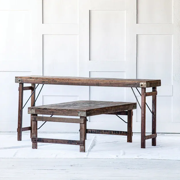 Indian weddings are lavish affairs that often include multiple days of ritual and celebration, and hundreds upon hundreds of elegantly appointed guests. Our extensive selection of wedding tables is salvaged from the inventory of numerous Indian wedding rental companies. All are refurbished to function as new, but maintain their original patina. Folding legs to help with storage.Hand crafted. Size & condition vary.