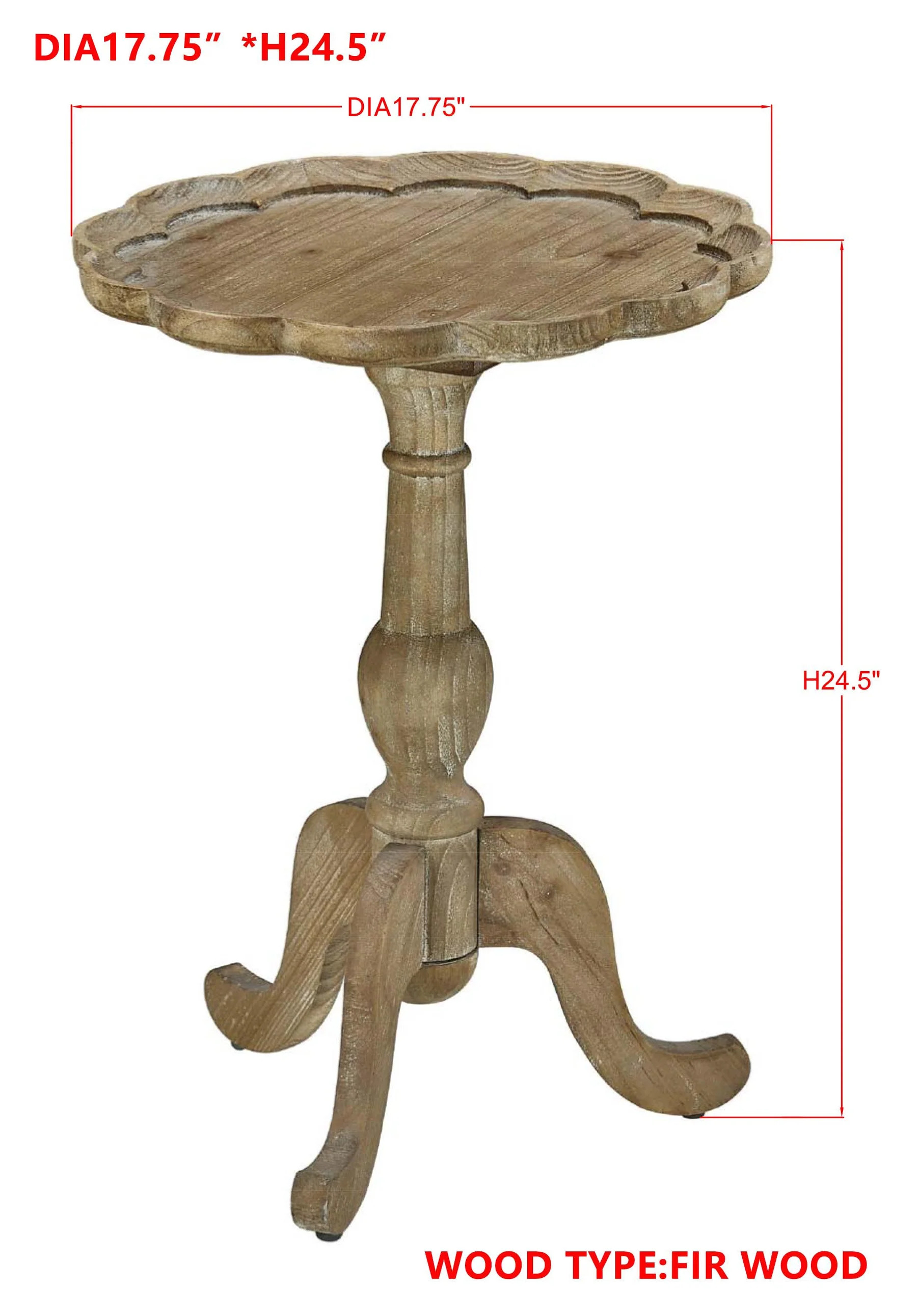 Mabel Accent Table - This French country-inspired side table exudes warmth with its rich tones and elegant scallop detailing on the tabletop, perched gracefully on curved tripod legs. It’s the perfect accent to add charm to your space, offering just the right size for displaying decor or resting your drink while you unwind. Both functional and beautiful, it brings a cozy touch to any room.