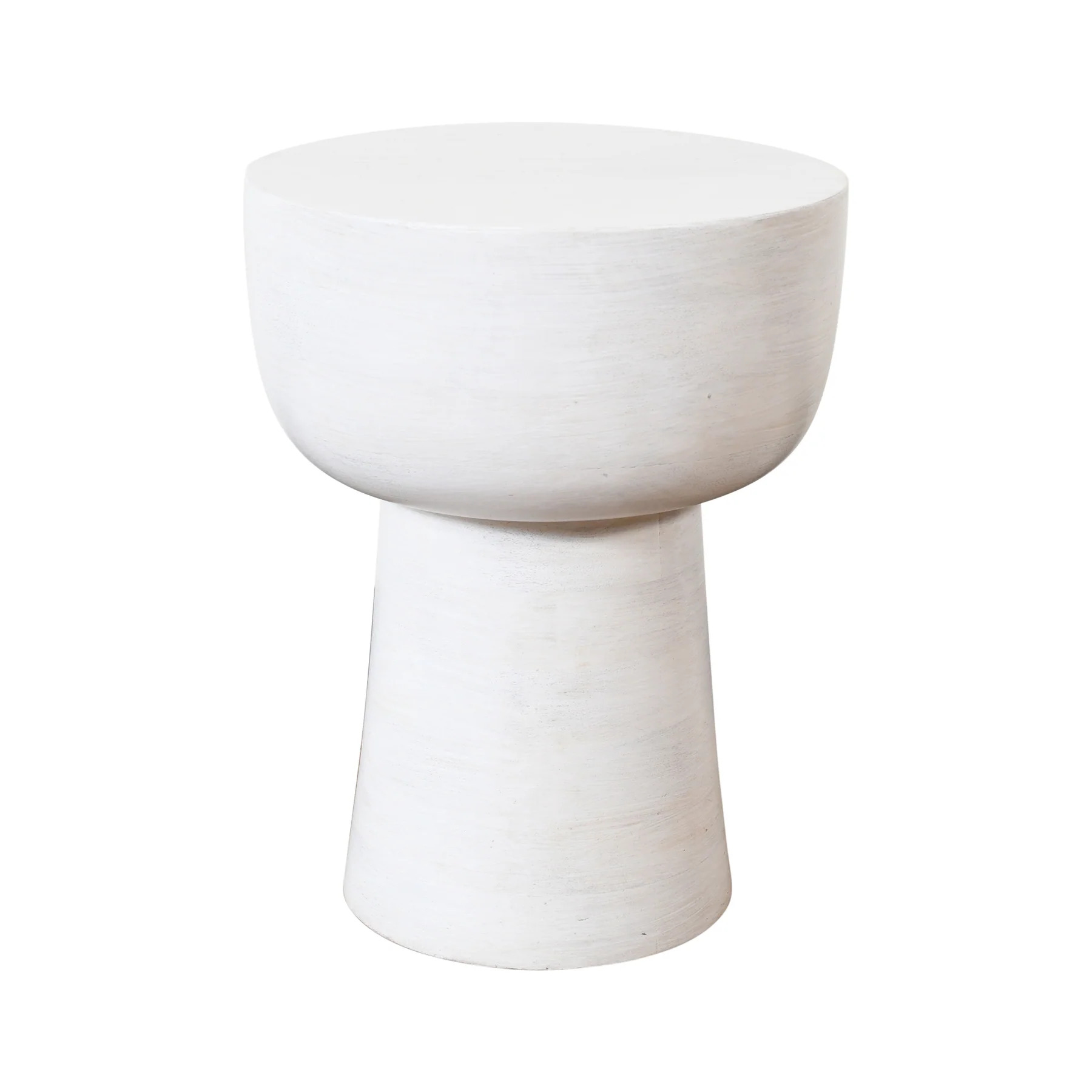 Wallen Accent Table - Ideal for minimalist and contemporary decor, the Wallen side table features a chic mushroom shape that brings a sculptural touch to any room. Crafted from durable mango wood with a smooth white finish, it offers modern elegance in a compact form, perfect for small spaces without compromising style.
