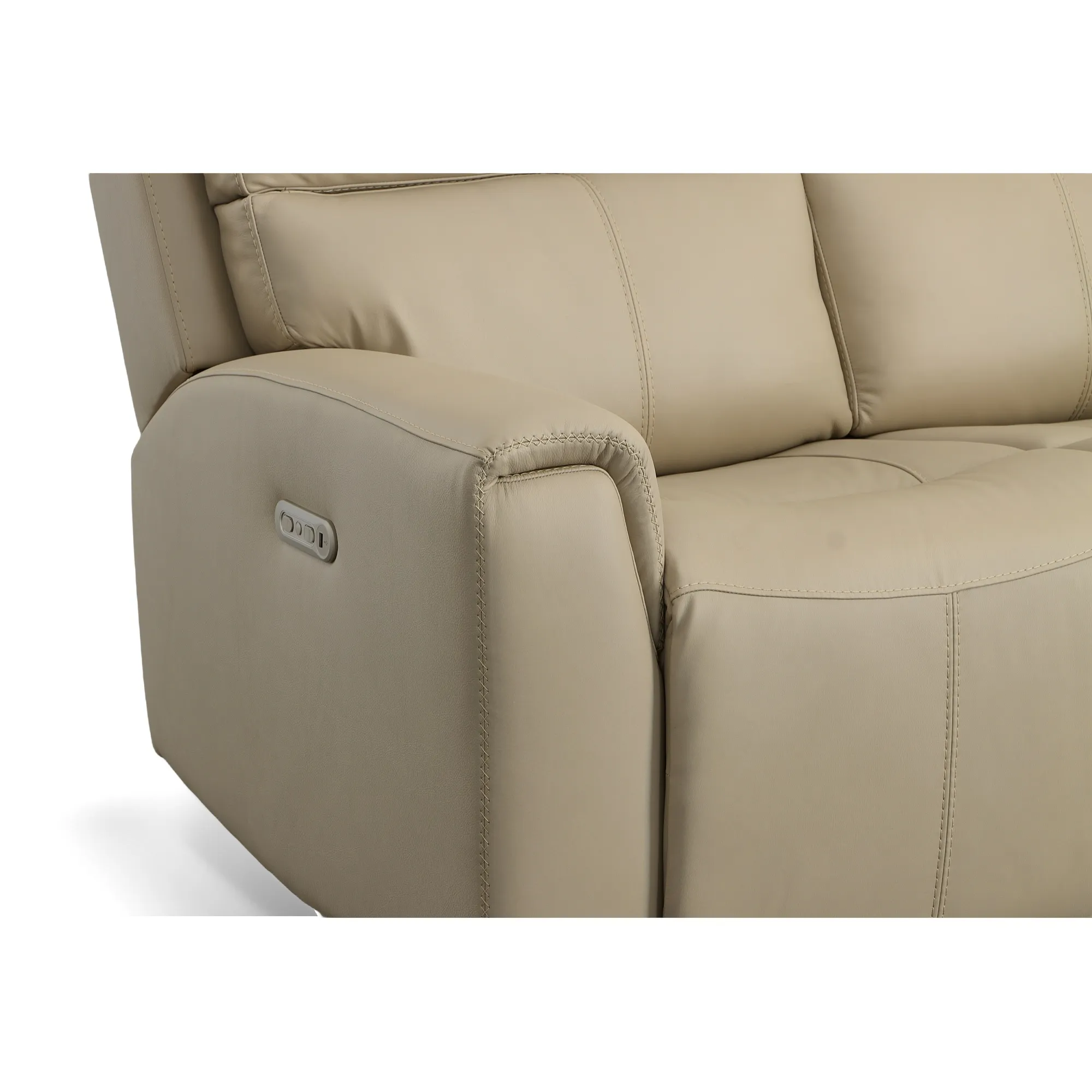 Make your me time even more relaxing with the Jarvis leather power reclining loveseat with power headrests. You and your family will enjoy lounging in this contemporary reclining loveseat, which packs a punch when it comes to ergonomic features. Zero Gravity recline technology gives you a feeling a weightlessness, while Flexsteel's patented Blue Steel Spring™ provides lasting support. You can even adjust the headrests and recline independently using power controls on either side of the loveseat and charge your devices with the built-in USB ports. Add a sleek aesthetic and refined design details to the mix, and you’ve got a loveseat that you’ll enjoy for years to come.