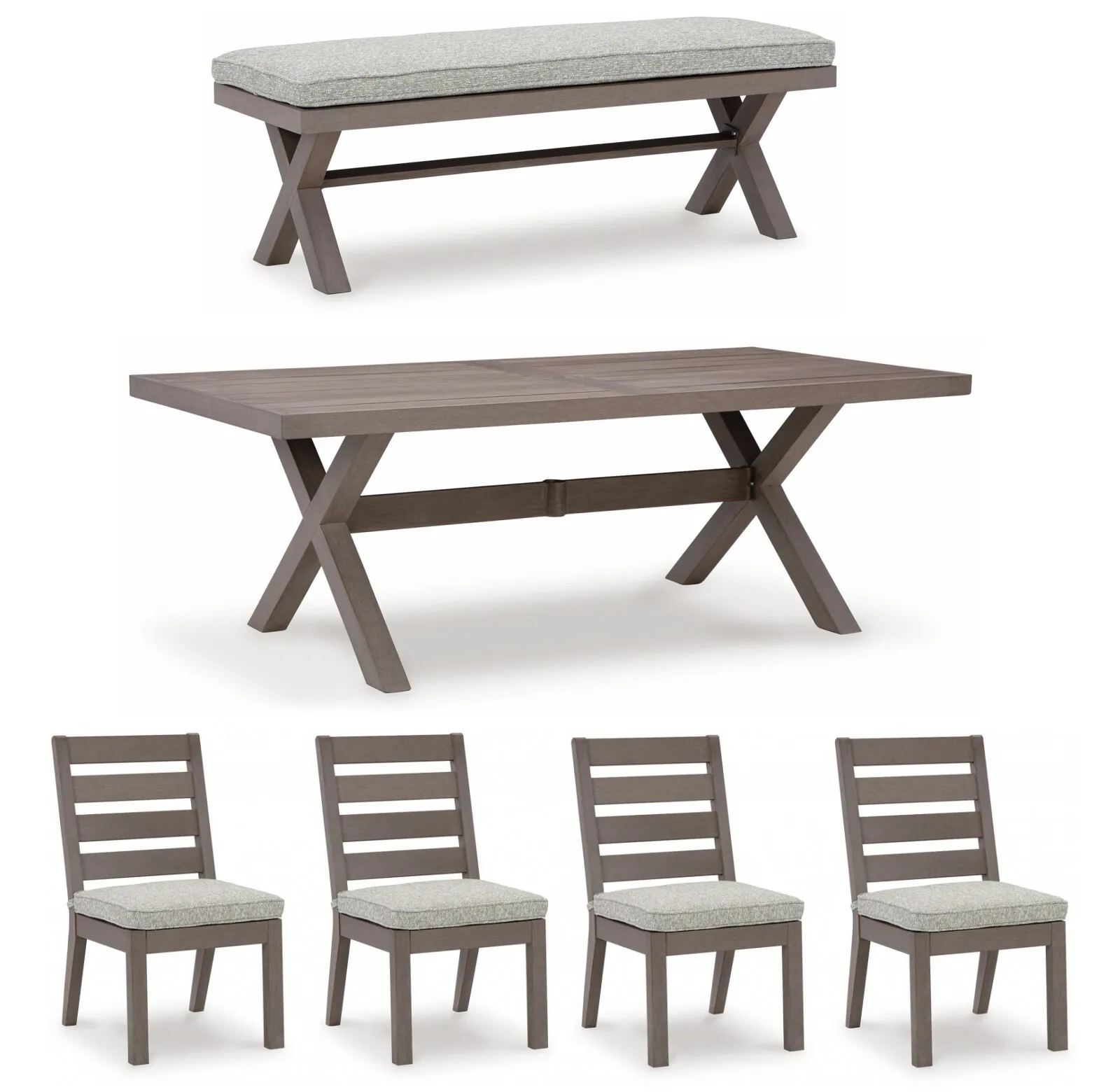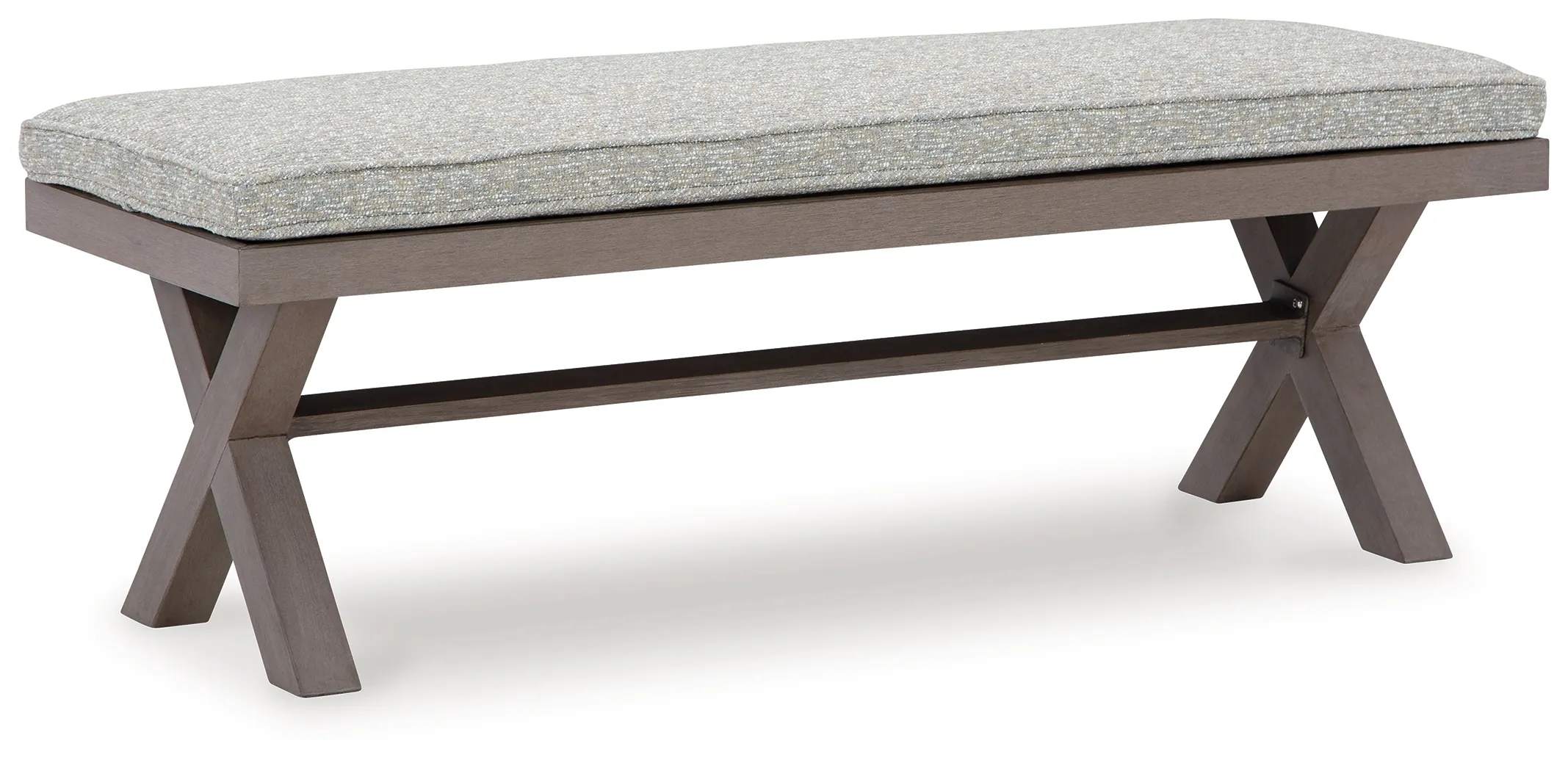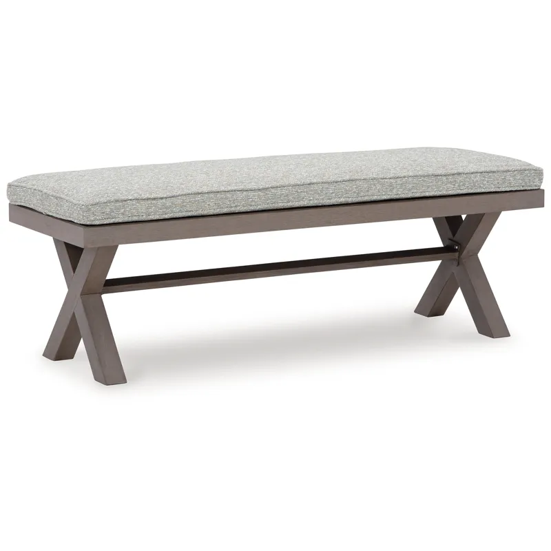 Hillside Barn 54" Outdoor Dining Bench (P564-600): 54.38 x 18.75 x 19.25 - This dining bench is a stylish outdoor piece with staying power. Built for longevity with Weatherwood, a synthetic material with the appearance of wood, it indulges you in contemporary design without sacrificing durability. Stunning form and can’t-miss function—with this bench, endless days in the shade await. Weatherwood, a cutting-edge engineered resin polymer, is designed to withstand the elements and offer a long-lasting wood look and color, Solid material is colored throughout, making it easy to remove scratches or scuff marks; heavyweight material is ideal for high-wind areas, Durable, low-maintenance material is colorfast, UV-resistant, easy to clean with mild soap and water and fully recyclable, Solution-dyed high-performance fabric, Nuvella+™ is an outdoor fabric that can be cleaned and offers enhanced UV resistance, Clean fabric with mild soap and water, let air dry; for stubborn stains, use a solution of 1 cup bleach to 1 gallon water, Stainless steel hardware, Designed to withstand the harsh elements of the outdoors
